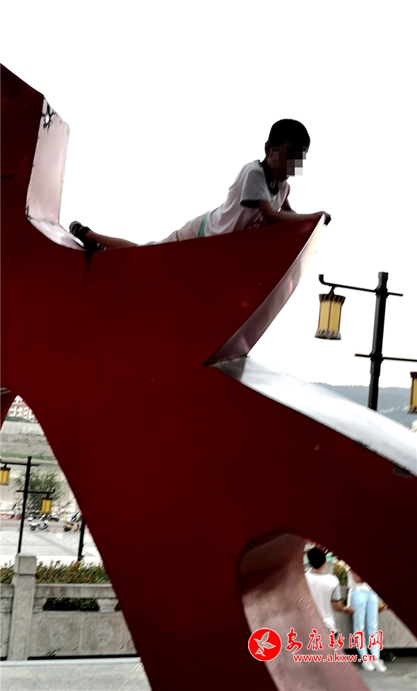 近日,記者在漢調(diào)二黃文化園看到,游玩的市民絡(luò)繹不絕,大部分市民都能做到文明游園,但其中也存在不文明行為。這里是文化園主題雕塑,幾個(gè)10歲左右的小男孩不斷攀爬雕塑,并在離地面約2米的高處逗留,現(xiàn)場(chǎng)既無(wú)工作人員勸導(dǎo)也沒(méi)有“禁止攀爬”的相關(guān)提示牌。記者 潘潤(rùn)生 攝