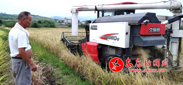 (圖為機械化收割水稻)