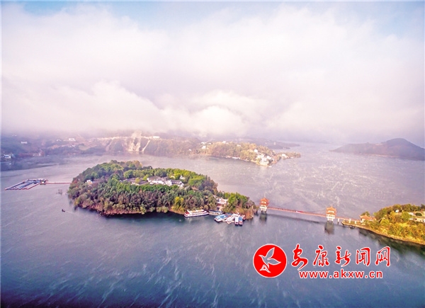 初冬的清晨,瀛湖風(fēng)姿綽約、曼妙無比。起初湖水像是受熱不均的沸水,這里一點(diǎn),那里一塊冒著熱騰騰的青煙,如絲如縷,在水面上輕盈地飄動(dòng)、游離、撕扯,如慵懶自在的白云,把天空、湖水襯托得更藍(lán)。漸漸地,煙嵐越來越濃,越來越多,像化不開的乳汁,最后整個(gè)湖面煙波浩渺,小船和遠(yuǎn)山若隱若現(xiàn),似人間童話仙境。這樣的山圍繞著這樣的水,這樣的水倒映著這樣的山,再加上湖中帆影點(diǎn)點(diǎn),白鷺行行,小島林立,魚群結(jié)對(duì),有種人在畫中游的感覺。深冬,總會(huì)落一兩場雪。那雪,極富層次。山下,素雪輕薄覆蓋;山上銀裝素裹,玉潔冰清。湖水則咕嘟咕嘟冒著熱氣,白綠相配,分外醒目,似丹青妙手繪制的山水畫,又似巧手繡娘精繡的刺繡,美輪美奐,惹人愛憐。