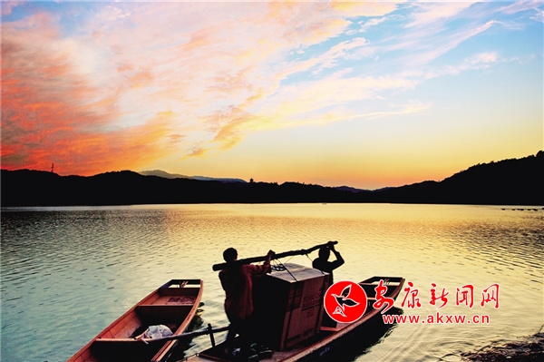景隨人動(dòng),瀛湖最美的季節(jié)還不在春天。深秋時(shí)節(jié),電站大壩下閘蓄水,水位上升,湖面開闊,山啊、樹啊宛立在水中,道不出的萬種風(fēng)情。水色如煙,光影朦朧,島嶼羅列,山水相依相親,如夢(mèng)似幻。此時(shí)大自然早已少了春的細(xì)賦描繪,已是濃墨重潑的巨幅寫意,山上樹葉五彩斑斕,深紅、橙紅、橙黃、明黃、碧綠、墨綠,層層疊疊、深淺不一,把大山裝扮得分外妖嬈,哪里還有“枯藤老樹昏鴉”的凄涼景象?