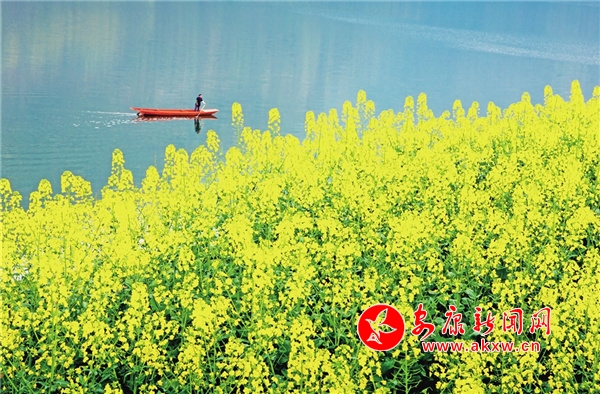 瀛湖的春天,立春很久才姍姍而來。春風(fēng)拂過山間林木,樹木爆芽吐綠。起初是一樹一樹的鵝黃,帶著幾分詩意。沒幾天,便是翡翠般的新綠,煥發(fā)著勃勃的生機(jī)。藍(lán)天麗日下,一池湖水碧波萬頃,如一面巨大的鏡子鋪展在天地間。頭頂?shù)乃{(lán)天白云,四周的紅花綠樹,全都靜臥湖底。魚兒開始產(chǎn)子,孕育后代,來來往往的游船載來四面八方的游客,火了周邊的農(nóng)家樂,鼓了村民的腰包。