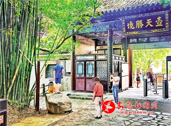 暑假期間,8月2日,在香溪洞景區(qū)內(nèi),一小孩站在景觀石上照相,旁邊的工作人員勸阻無效。