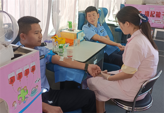 獻血現(xiàn)場公安干警及人民群眾積極參與到無償獻血當(dāng)中來,用實際行動弘揚“奉獻、友愛、互助、進步”的志愿服務(wù)精神和社會責(zé)任,展現(xiàn)了勇于奉獻、樂于助人的新時代文明風(fēng)尚。?