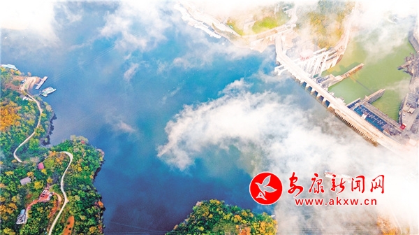 安康位于漢江中上游,秦嶺以南,巴山以北,漢江穿境而過。近日的安康瀛湖,色彩斑斕、美麗如畫,特別是在夕陽西下和旭日初升的時候,格外美麗,如一幅巨大的山水畫鑲嵌在群山懷抱之中,引人入勝。 趙華斌 攝?