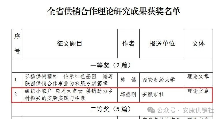 按:本文系安康市供銷合作社黨組書記、理事會主任邱德剛署名理論文章,立足供銷助力鄉(xiāng)村振興的安康實踐與探索,深入闡述了“組織小農戶應對大市場”的內在邏輯,把群眾“組織起來”投身經(jīng)濟合作的實踐方法,在助力鄉(xiāng)村振興、推進共同富裕實踐中探索出一條可復制可推廣的典型經(jīng)驗,其理論內涵、實踐邏輯為在推進鄉(xiāng)村振興中更好發(fā)揮供銷社的獨特優(yōu)勢和重要作用提供了有益參考,具有較強的指導意義。該文在中華全國供銷總社和陜西省供銷總社“薪火相傳七十載,砥礪奮進新時代”主題征文中獲評“全省供銷合作理論研究成果一等獎”。