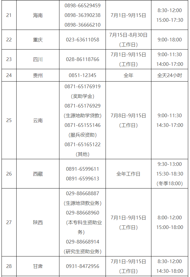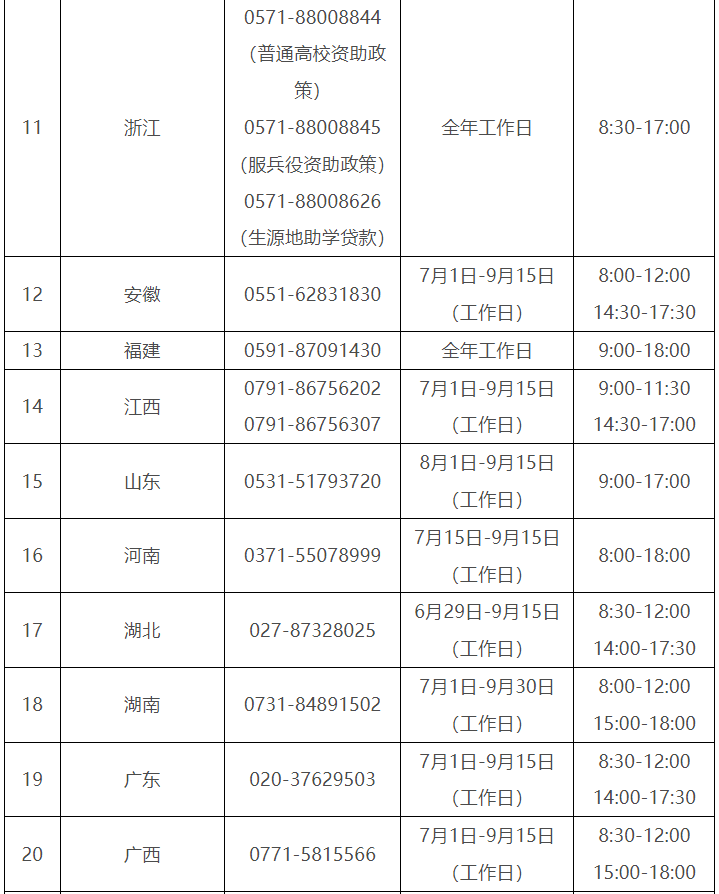各?。ㄗ灾螀^(qū)、直轄市)和中央部門所屬高校同步開通了熱線電話,電話號碼與開通時(shí)間可查看匯總表。