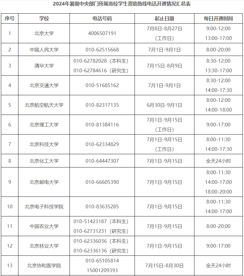 2024年暑期教育部高校學(xué)生資助熱線電話7月1日開通