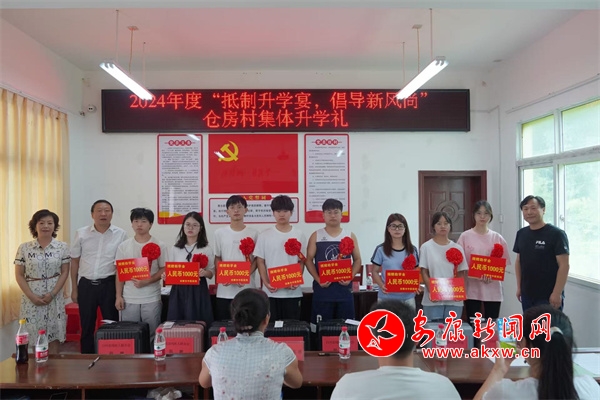 自2017年白河縣首場集體升學禮在倉房村順利舉辦以來,倉房堅持村連續(xù)七年為準大學生們舉辦集體升學禮儀式。8月9日,倉房村攜手市中醫(yī)醫(yī)院和縣殘聯(lián)在全鎮(zhèn)率先開展集體升學禮儀式,在儀式上市中醫(yī)醫(yī)院和縣殘聯(lián)分別為準大學生們送上助學金和行李箱,并勉勵他們求學路上要堅定理想,培養(yǎng)良好的人生觀、價值觀,勤奮學習練就過硬本領(lǐng),回報家鄉(xiāng)。