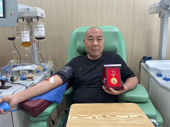 從那時起,李軍開啟了自己的獻血之路,不論刮風(fēng)下雨、烈日寒冬,還是逢年過節(jié),只要接到血站通知,他總會安排好手頭工作來到血站擼袖獻血。記得那是2021年7月15日,盡管天氣惡劣,李軍還是準(zhǔn)時到達獻血屋,頭天晚上接到血站電話的李軍,第二天早早向自己的公司請了個假,立馬趕往獻血屋捐獻血小板。對于獻血這件事,從不耽誤、從不含糊。因為他覺得,自己的付出,能使生命得以重生,是自己人生價值的最好體現(xiàn)。李軍:獻完這次血,我就光榮“退休”了