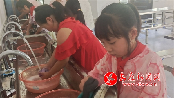 自己動手,豐衣足食。全體學(xué)生輪流為大家就餐服務(wù),服務(wù)學(xué)生在早晨課前時間全程參與監(jiān)督廚房食材的出庫、加工、留樣過程;在午餐前15分鐘來到餐廳為同學(xué)打飯、端菜,在就餐結(jié)束后全體學(xué)生一起清洗餐具、打掃廚房;并做好每日食堂就餐服務(wù)日志。