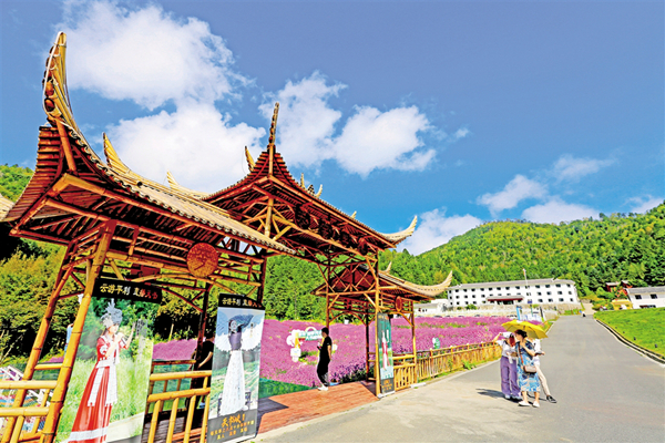 中秋節(jié)期間,平利千家坪森林公園天書峽馬鞭草花競相怒放。如畫的景色吸引眾多游客前來賞景打卡。(詹永桂 攝)