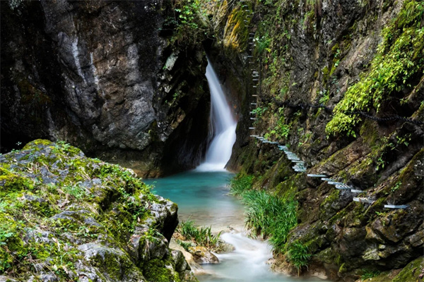 正說著,老太太風(fēng)塵仆仆地回來了。交談中我問她有沒有拍幾張瀑布的照片,她說拍了很多小視頻和照片。在她的手機(jī)里,我看到了“雁山瀑布”如天馬行空的銀河,優(yōu)雅地在空中舞動,散發(fā)著靈動的清新,讓人心曠神怡;看到了瀑布群如同一幅幅流動的畫卷,從高高的崖壁傾瀉而下,水花飛濺,在陽光下熠熠生輝,閃爍著晶瑩剔透的光芒;看到了“蓮花石?!豹q如蓮花般綻放于溪谷,奇石林立,溪澗飛流,蒲草蔥郁,蔚為壯觀;看到了“眾石飛泉”宛如銀龍勁舞,飛落碧潭,濺起點(diǎn)點(diǎn)水花,曼妙成躍動的精靈,美輪美奐,姿態(tài)萬千。
