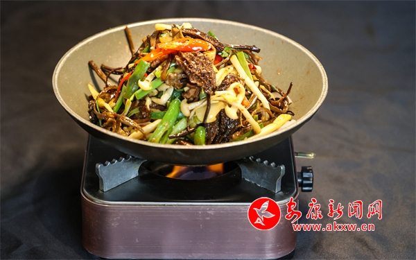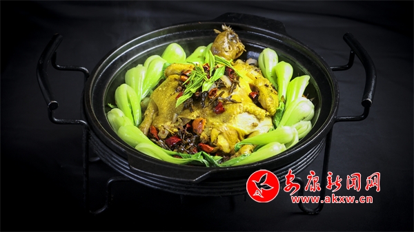 紫陽(yáng)茶香宴研發(fā)是張顯峰對(duì)菜品研發(fā)的起點(diǎn),面對(duì)紫陽(yáng)豐富的“好食材”,張顯峰有很多想法。他要做有地域特色的“好味道”。洋芋粑粑炒臘肉是紫陽(yáng)地域特色菜品,張顯峰做這道菜首先要選用紫陽(yáng)散養(yǎng)黑土豬臘肉,同時(shí)要選用高山黃心小洋芋,純手工制作洋芋粑粑。這樣做出的“洋芋粑粑炒臘肉”既有洋芋自然味道,臘肉咸香不油膩,洋芋粑粑筋道順滑口感好。與此同時(shí)他結(jié)合當(dāng)?shù)叵M(fèi)能力及餐廳定位研發(fā)制作的“秦巴山珍”,選用紫陽(yáng)本地出產(chǎn)的羊肚菌、茶樹(shù)菇、海鮮菇等優(yōu)質(zhì)菌類(lèi),菌類(lèi)改刀后焯水,然后煨制入味,在拉油大火快炒后 放入特制有加熱功能的器皿中保持菜品溫度和味道。讓客人吃出“干香微辣”的口感。
