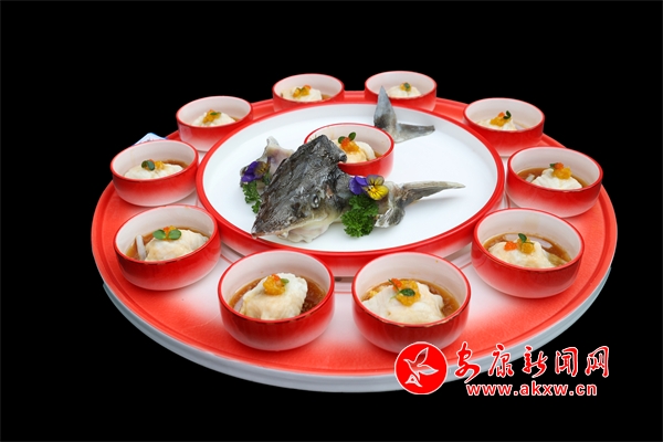 “陜南淡水魚(yú)餐飲暨‘贛義鑫杯’烹飪技能大賽”是張顯峰走出去學(xué)習(xí)交流檢驗(yàn)自己菜品研究成果的平臺(tái)。在準(zhǔn)備本次比賽菜品時(shí),他選用了紫陽(yáng)縣最好的食材“富硒鱘魚(yú)”、花鰱魚(yú),土黑豬五花肉及羊肚菌等蔬菜,精心制作了兩道菜品,第一道菜品是紫陽(yáng)茶香宴中的主菜——茶香鱘龍。這道菜擺盤(pán)高雅,肉質(zhì)細(xì)膩,口味鮮美,茶香與淡水魚(yú)的完美結(jié)合,讓人仿佛置身于清新的茶山之間,品味著大自然的饋贈(zèng)。