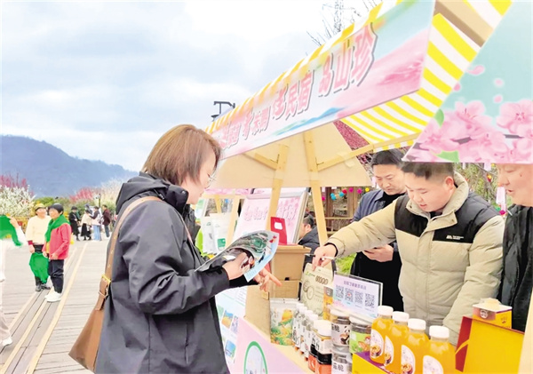 “可以嘗嘗嘛,不買也沒事?!碧禺a(chǎn)店店主曾大姐熱情地招呼著,為游客遞上煙熏豆干的試吃小樣。熱情寵客、誠信待客,讓前來店里購買特產(chǎn)的人越來越多。