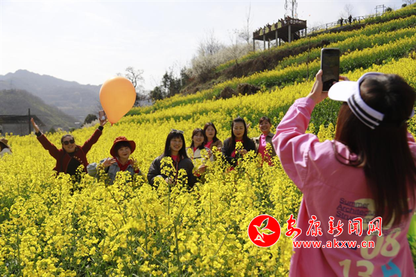 陽(yáng)春三月,嵐皋縣城關(guān)鎮(zhèn)水田村1000畝繁茂的油菜花海,為大地迅速披上一層金色的盛裝,吸引眾多的游客紛紛前來(lái)觀光旅游,分享陽(yáng)春三月、鳥(niǎo)語(yǔ)花香的鄉(xiāng)間美麗景色。(攝影 廖霖)?