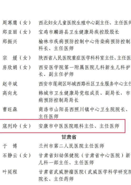 寇列玲,女,漢族,1975年10月生,陜西黃陵人,中共黨員,主任醫(yī)師,現(xiàn)任安康市中醫(yī)醫(yī)院眼科主任。該同志醫(yī)術(shù)精湛,服務(wù)患者耐心細(xì)致,心系社會(huì),開展近視防控公益行進(jìn)校園100余次,行程20萬公里,篩查學(xué)生10余萬人,受益學(xué)生50余萬人,解除安康山區(qū)數(shù)以萬計(jì)眼病患者痛苦,避免因盲致貧、因殘致貧。帶領(lǐng)眼科團(tuán)隊(duì)銳意進(jìn)取,眼科入選國(guó)家區(qū)域診療中心培育單位、國(guó)家中醫(yī)優(yōu)勢(shì)專科建設(shè)項(xiàng)目、陜西省區(qū)域診療中心。參與國(guó)家中醫(yī)藥管理局《前部缺血性視神經(jīng)病變》臨床指南制修訂,完成省中醫(yī)藥管理局十大病種《玻璃體積血》《消渴目病》創(chuàng)新項(xiàng)目,取得陜西省科技成果三等獎(jiǎng)2項(xiàng),被評(píng)為安康市第四屆十佳醫(yī)生稱號(hào),榮獲安康市十佳科技青年獎(jiǎng),被評(píng)為安康市有突出貢獻(xiàn)專家,入選“西部之光”訪問學(xué)者。