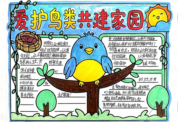 守護(hù)藍(lán)天精靈,共享美好家園!《安康高新區(qū)愛鳥護(hù)鳥倡議書》發(fā)布以來,全區(qū)的孩子們積極行動(dòng),他們用畫筆以純真之心勾勒出對鳥兒的關(guān)愛與守護(hù)。他們把對鳥兒的喜愛融進(jìn)顏料,將守護(hù)的心愿畫入畫紙。稚嫩的筆觸下,有給小鳥搭建的溫暖巢穴,有禁止捕鳥的醒目標(biāo)語,有鳥兒在藍(lán)天自由翱翔的愜意,有人類與鳥兒和諧共處的溫馨,有孩子們與鳥兒牽手同行的幻想…… (通訊員 劉松)
