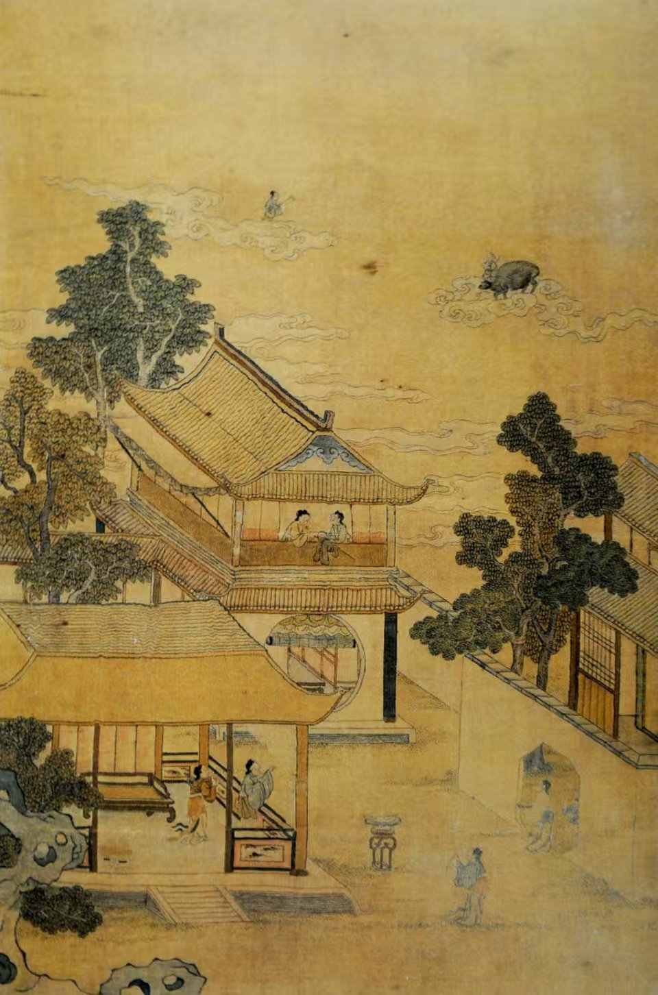 北京故宮博物院收藏的清代緙絲七夕乞巧圖軸,將天上和人間完美融合:上半部分是天上,牛郎織女在祥云圍繞下相會,眼神中充滿了深情和眷戀;下半部分是人間,幾位婦女或憑欄遠眺,或?qū)掌蚯?,一派和諧景象。這幅圖軸以緙絲工藝展現(xiàn),色彩豐富、線條細膩,不僅展現(xiàn)了古人高超的技藝,也反映了當(dāng)時社會對七夕節(jié)的重視和人民對美好生活的向往。