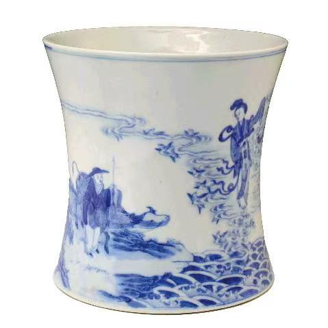 山東博物館收藏的清光緒青花七夕卷筒,也描繪了牛郎織女在天河上即將相會的情景。卷筒圖案中,祥云繚繞、喜鵲飛舞,鵲橋很快就會搭成。一年未見,牛郎拱手準(zhǔn)備,對即將到來的見面迫不及待;織女衣袂飄飄,含情脈脈地望著日夜思念的牛郎。畫中人物清麗灑脫、典雅高貴,器物主題鮮明、藝術(shù)性較高,真可謂秦觀筆下“金風(fēng)玉露一相逢,便勝卻人間無數(shù)”的生動注解。