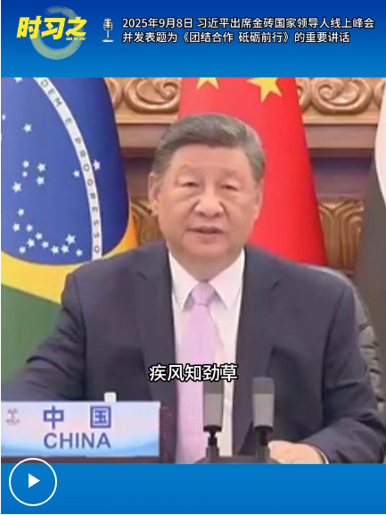 2025年9月8日晚,國(guó)家主席習(xí)近平出席金磚國(guó)家領(lǐng)導(dǎo)人線上峰會(huì),并發(fā)表題為《團(tuán)結(jié)合作 砥礪前行》的重要講話。