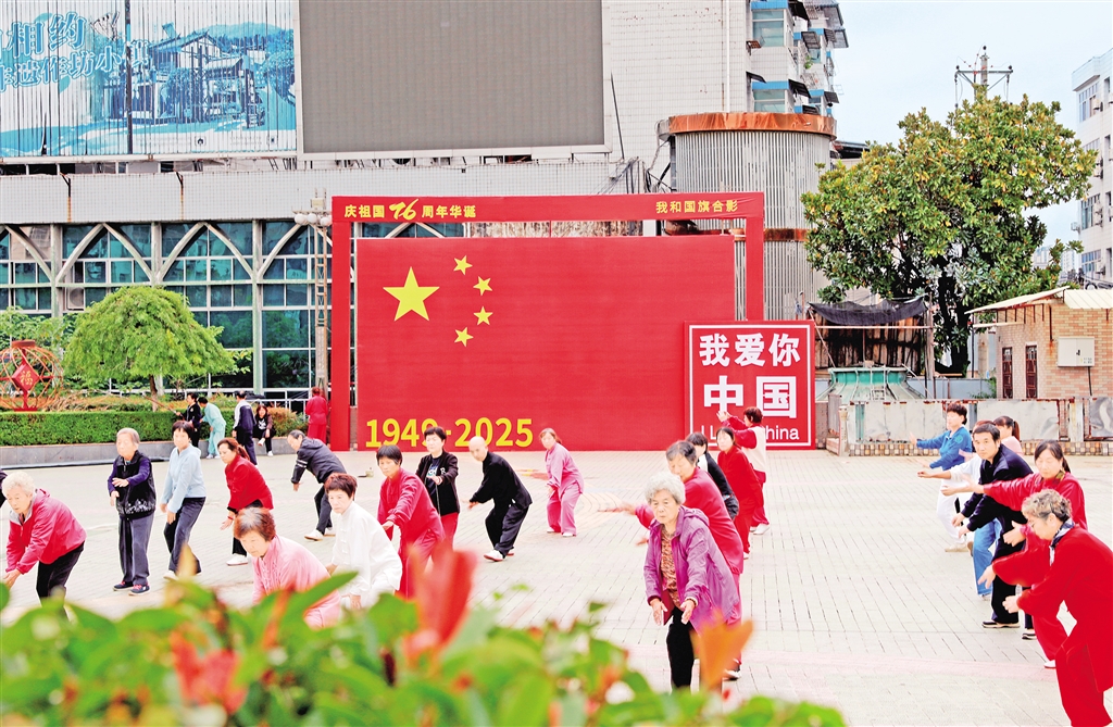 紫陽城區(qū)的街頭巷尾,一面面鮮艷的五星紅旗迎風(fēng)招展,處處洋溢著祥和的節(jié)日氛圍。?
