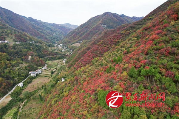 初冬時(shí)節(jié),地處秦嶺南麓的漢濱區(qū)早陽鎮(zhèn)境內(nèi),滿山的紅葉把山村裝扮得美如一幅畫,引得眾多游客和市民來這里賞紅葉、觀美景,盡享生態(tài)之美。圖為無人機(jī)視角下的早陽紅葉美景。 (通訊員 周濤)