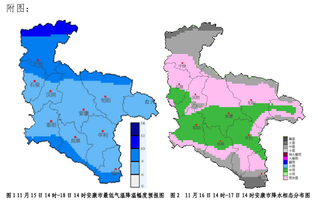 本網(wǎng)訊 11月14日,市氣象臺(tái)發(fā)布《重要天氣報(bào)告》:受高空冷渦影響16—17日我市有一輪寒潮、雨雪、吹風(fēng)天氣,主要降水時(shí)段為16日傍晚至17日上午,全市大部有小到中雨或雨夾雪,秦巴山區(qū)雨夾雪轉(zhuǎn)中雪,局地大到暴雪,過(guò)程累計(jì)降水量大部7~20毫米。