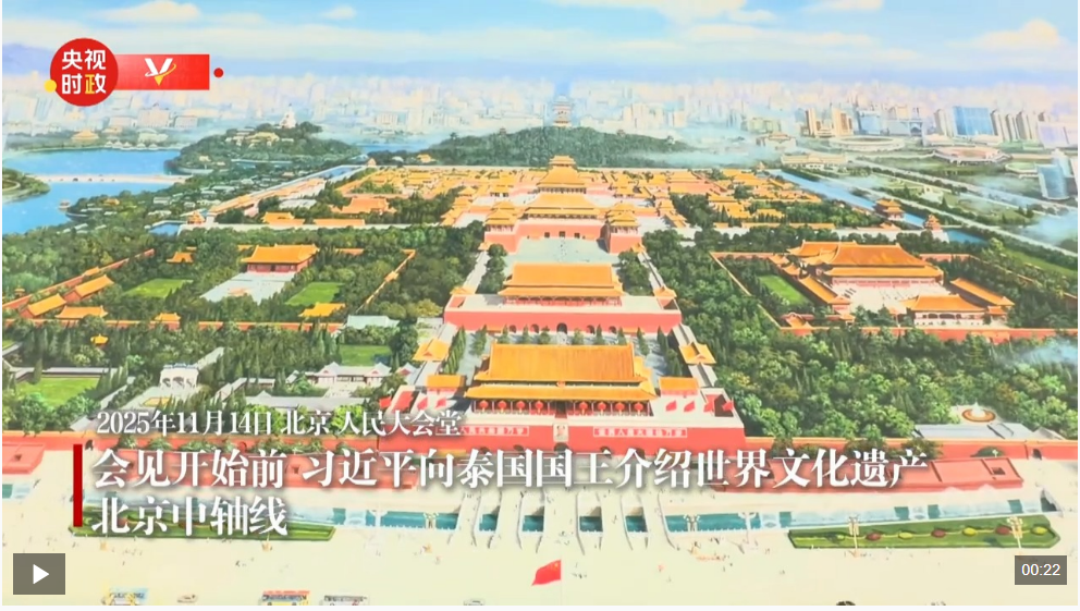 會見開始前,習(xí)近平向泰國國王介紹世界文化遺產(chǎn)——北京中軸線。