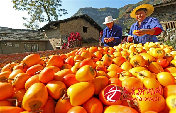 鄉(xiāng)親們趁著柿子還沒軟就采摘下來,在房前屋后搭起一排排晾曬柿餅的木架,開始每年一次的傳統(tǒng)手工勞作:去皮、懸掛、晾曬。出霜后就成了美味的柿餅。