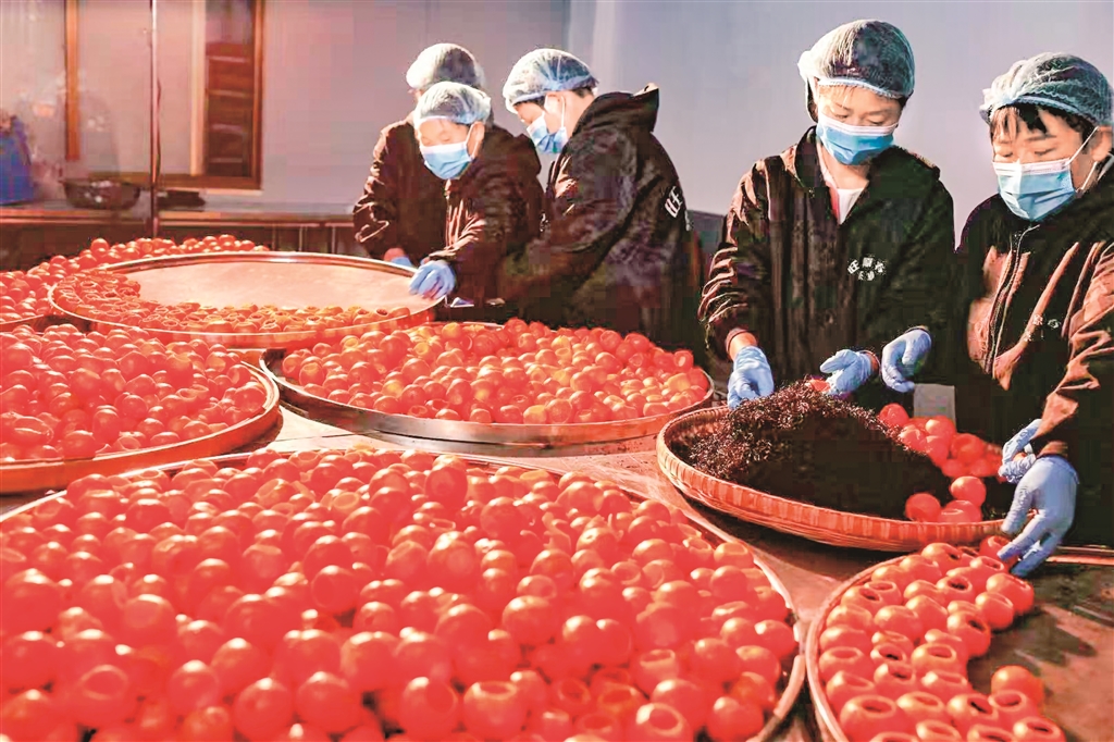 生產(chǎn)車間內(nèi),工人們動作嫻熟,選果、清洗、開蓋、掏挖果肉、填茶、烘干……每一道工序都有條不紊。他們大都是附近的村民,本是茶葉生產(chǎn)的淡季,如今卻因為小橘茶變成了增收的旺季。