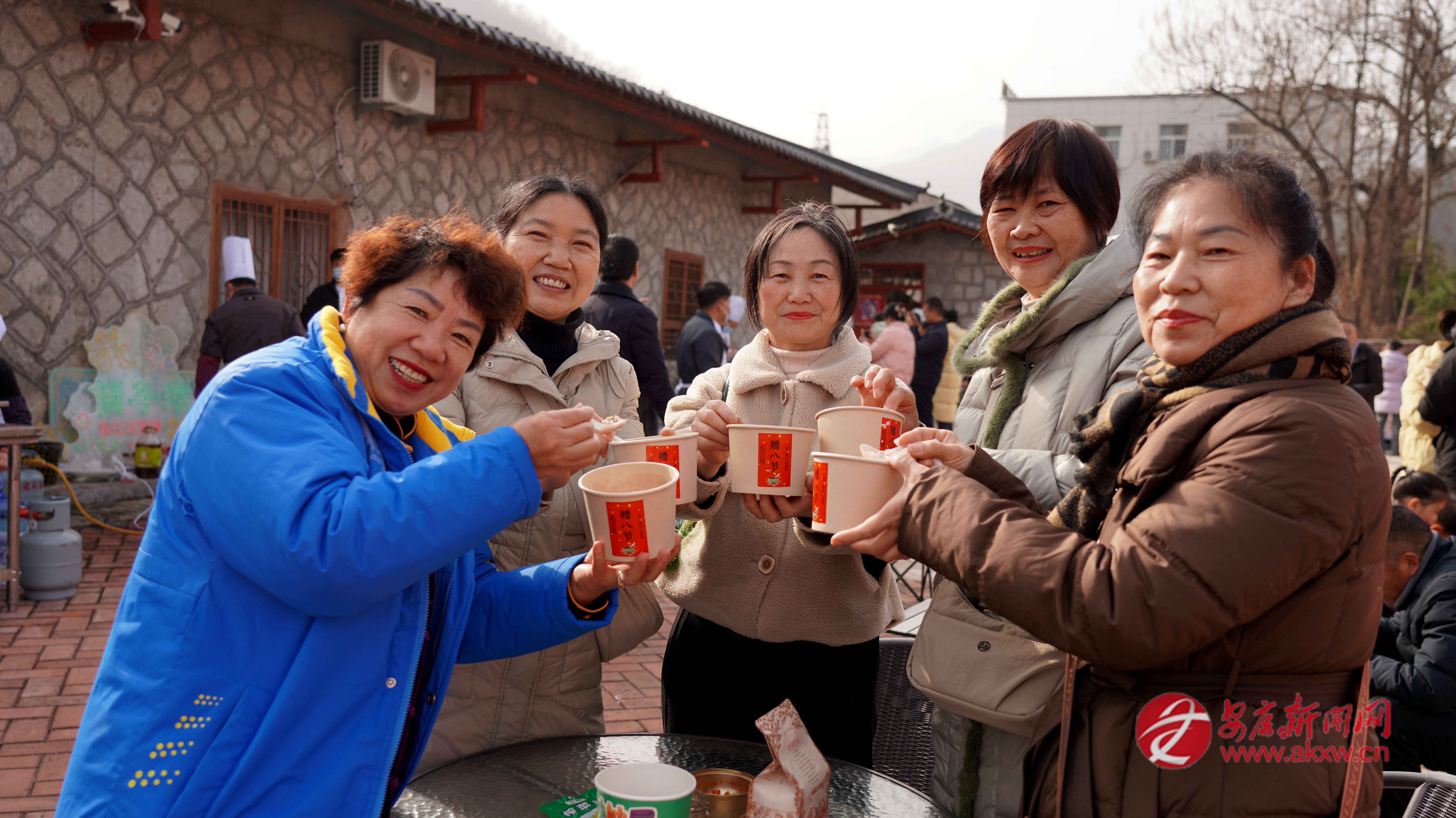 城關(guān)鎮(zhèn)漁灣逸谷則復(fù)刻了傳統(tǒng)庖湯宴場景。兩頭年豬現(xiàn)場宰殺,50桌壩壩宴擺滿臘味燉菜,5000余名游客圍坐共享原汁原味的農(nóng)家風(fēng)味?!笆巢男迈r、空氣清新、飯菜健康!”西安游客劉政霖由衷贊嘆。