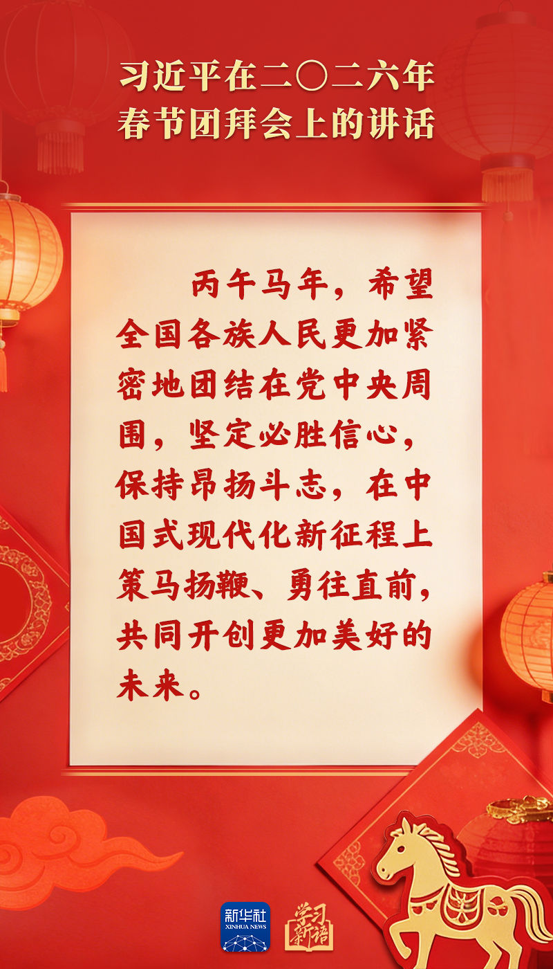 原標(biāo)題:學(xué)習(xí)新語(yǔ)|策馬揚(yáng)鞭、勇往直前!2026年春節(jié)團(tuán)拜會(huì)總書記講話金句