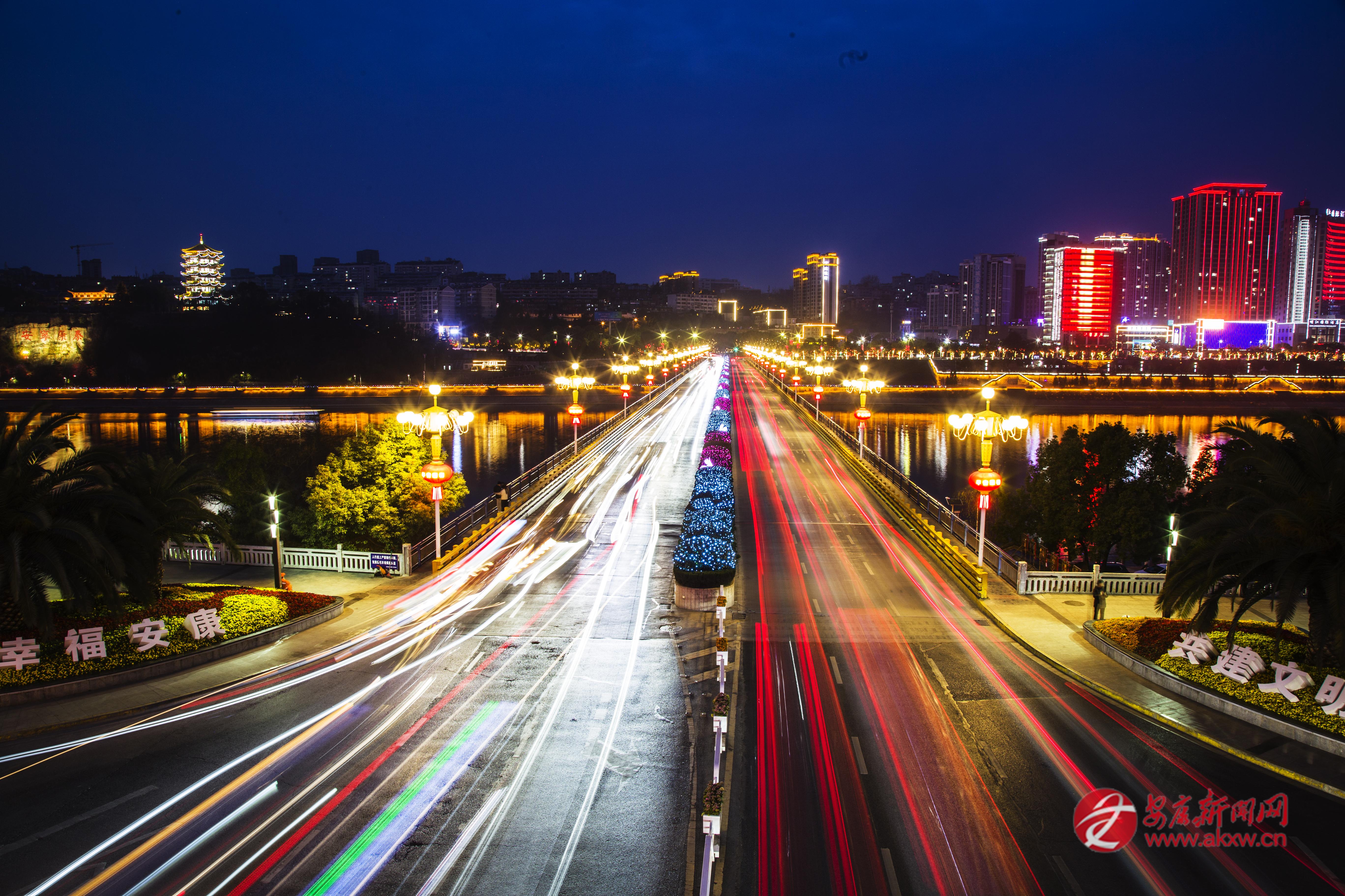 2月22日傍晚,中心城區(qū)漢江一橋流光溢彩,盡顯城市活力與新春喜慶。 張炳實 攝