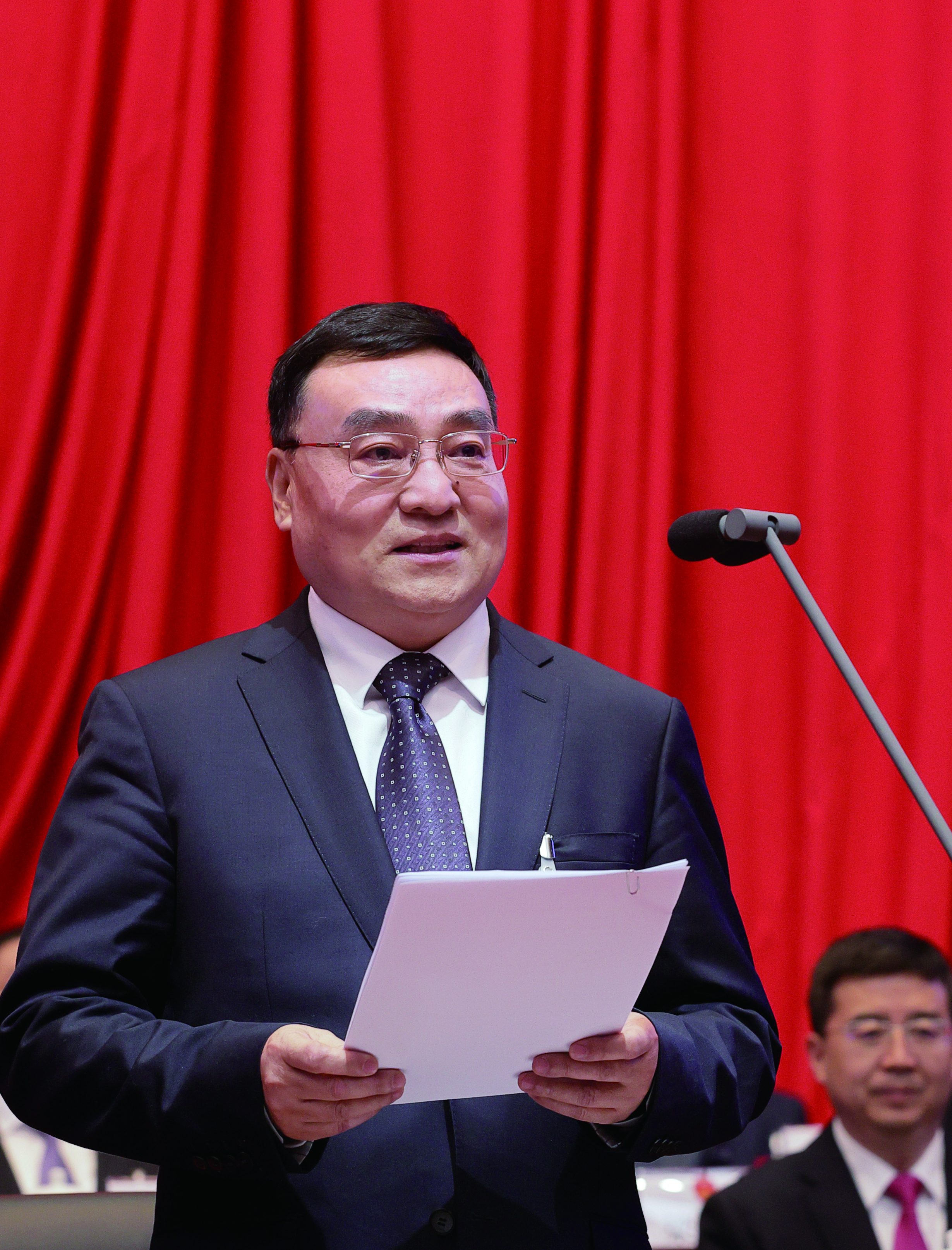 代市長張小平代表市人民政府向大會作政府工作報告。記者 潘潤生 攝