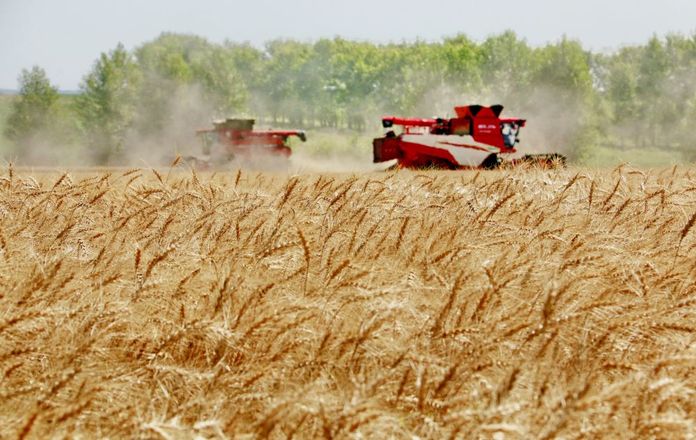 2025年8月5日,位于黑龍江省五大連池市的大慶油田農場調動多臺聯(lián)合收割機搶收小麥。新華社發(fā)(陸文祥 攝)