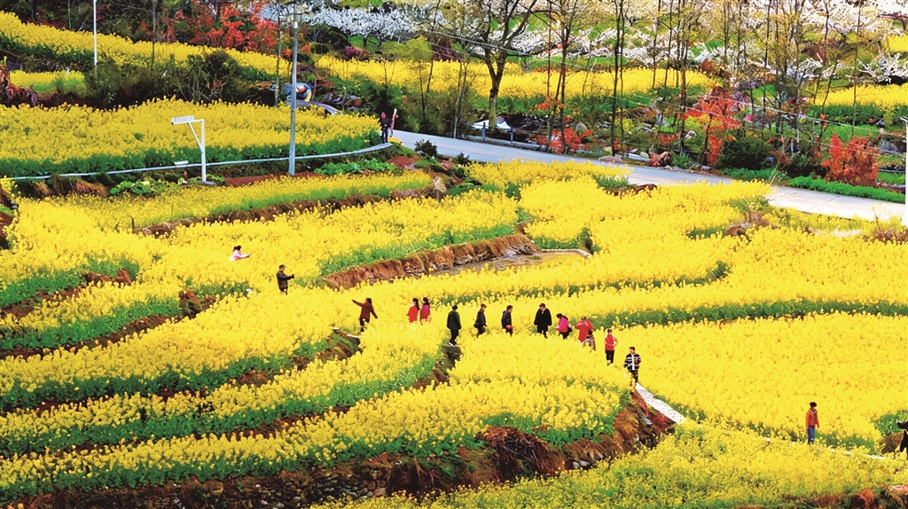 3月18日,游人漫步花田,邂逅漢陰山鄉(xiāng)好時光。 張忠 攝