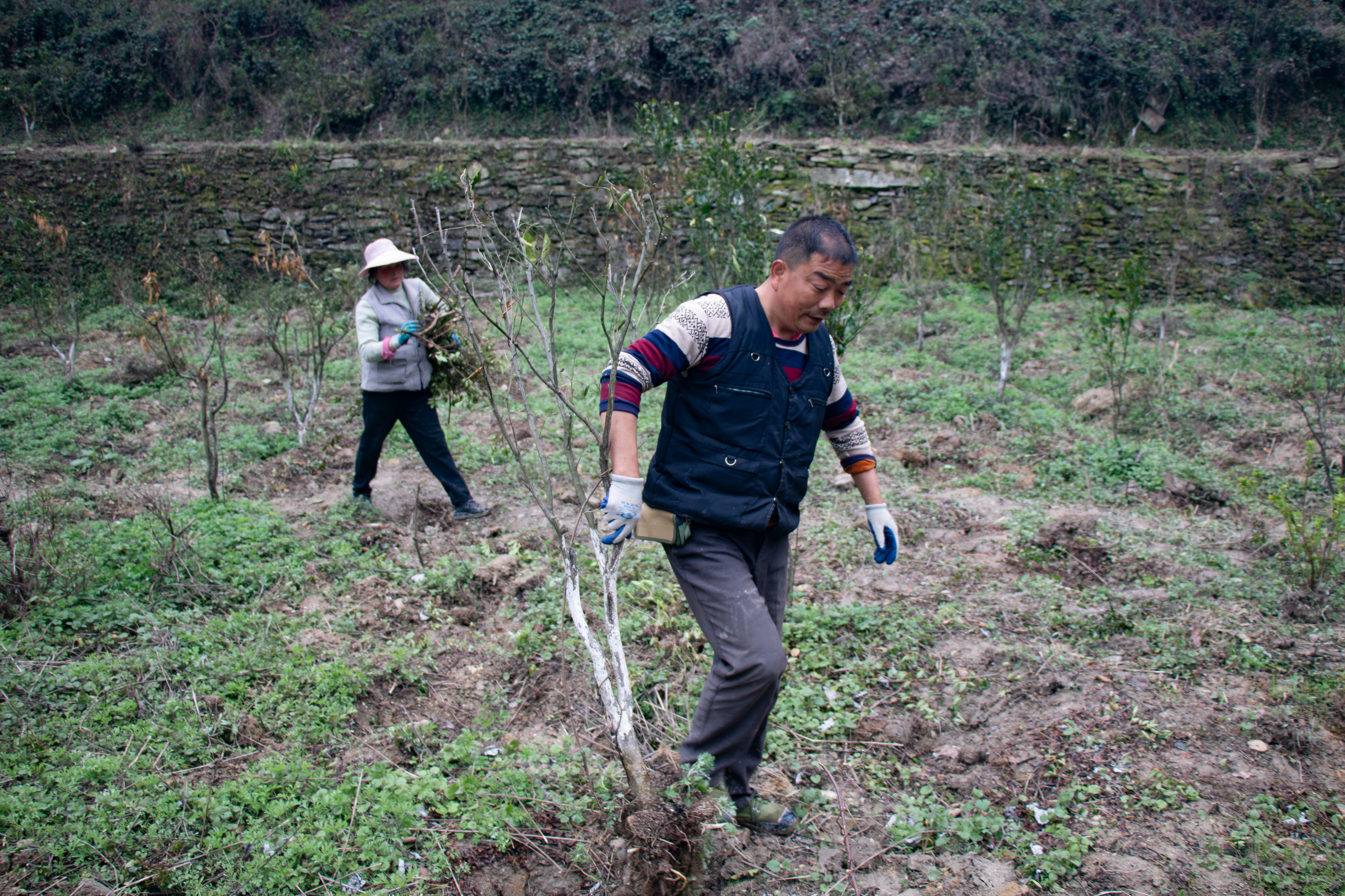 “天下沒(méi)有免費(fèi)的午餐。”失敗讓唐小明清醒:農(nóng)業(yè)必須遵循科學(xué)。他奔赴四川、山東、云南等多省學(xué)習(xí),白天觀摩,夜間整理筆記。2020年底,他傾盡積蓄300余萬(wàn)元,引進(jìn)金絲楠木、紅豆杉、蜂糖李等苗木20余萬(wàn)株再次嘗試。然而困難接踵而至:栽的過(guò)淺的苗枯死了,扎根石地的苗夭折了,定根未澆透水的苗萎蔫了,從成都高價(jià)運(yùn)來(lái)的大柚子樹(shù)全軍覆沒(méi),金絲楠木成活率不足百分之一。與此同時(shí),自然災(zāi)害也連續(xù)不斷,暴雨沖垮了護(hù)坎,洪水卷走了數(shù)百只大白鵝,野豬啃光了2萬(wàn)株獼猴桃……百萬(wàn)資金如流水般投入,換回的是心碎。