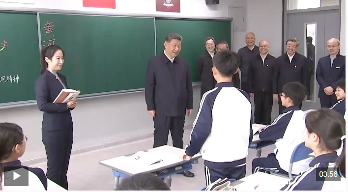 初一(2)班,一堂語文課正在進(jìn)行中。習(xí)近平總書記走進(jìn)這間教室,同師生交談,了解教學(xué)情況。