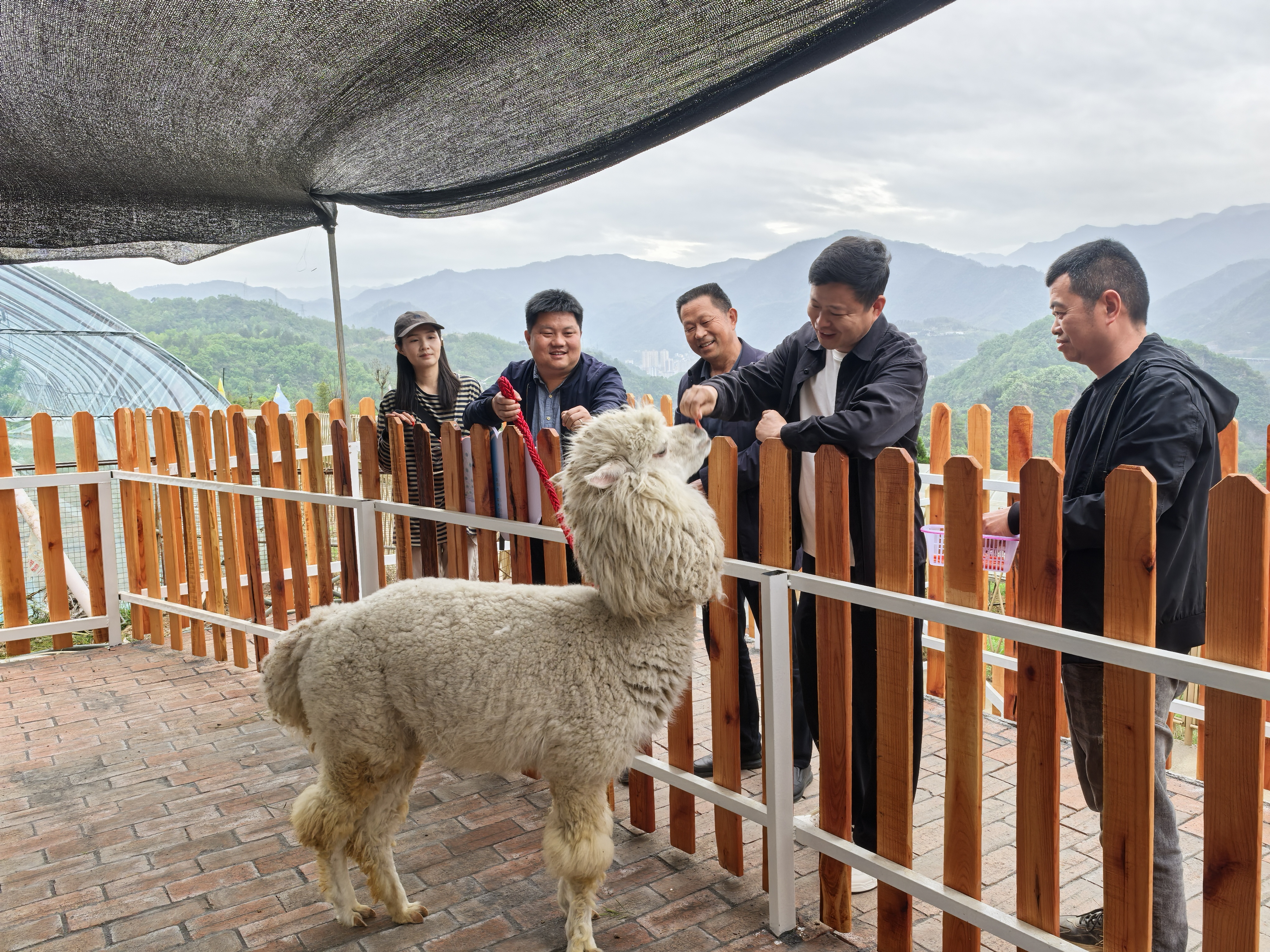 萌寵樂園里游客正在投喂羊駝。 張?zhí)毂?攝