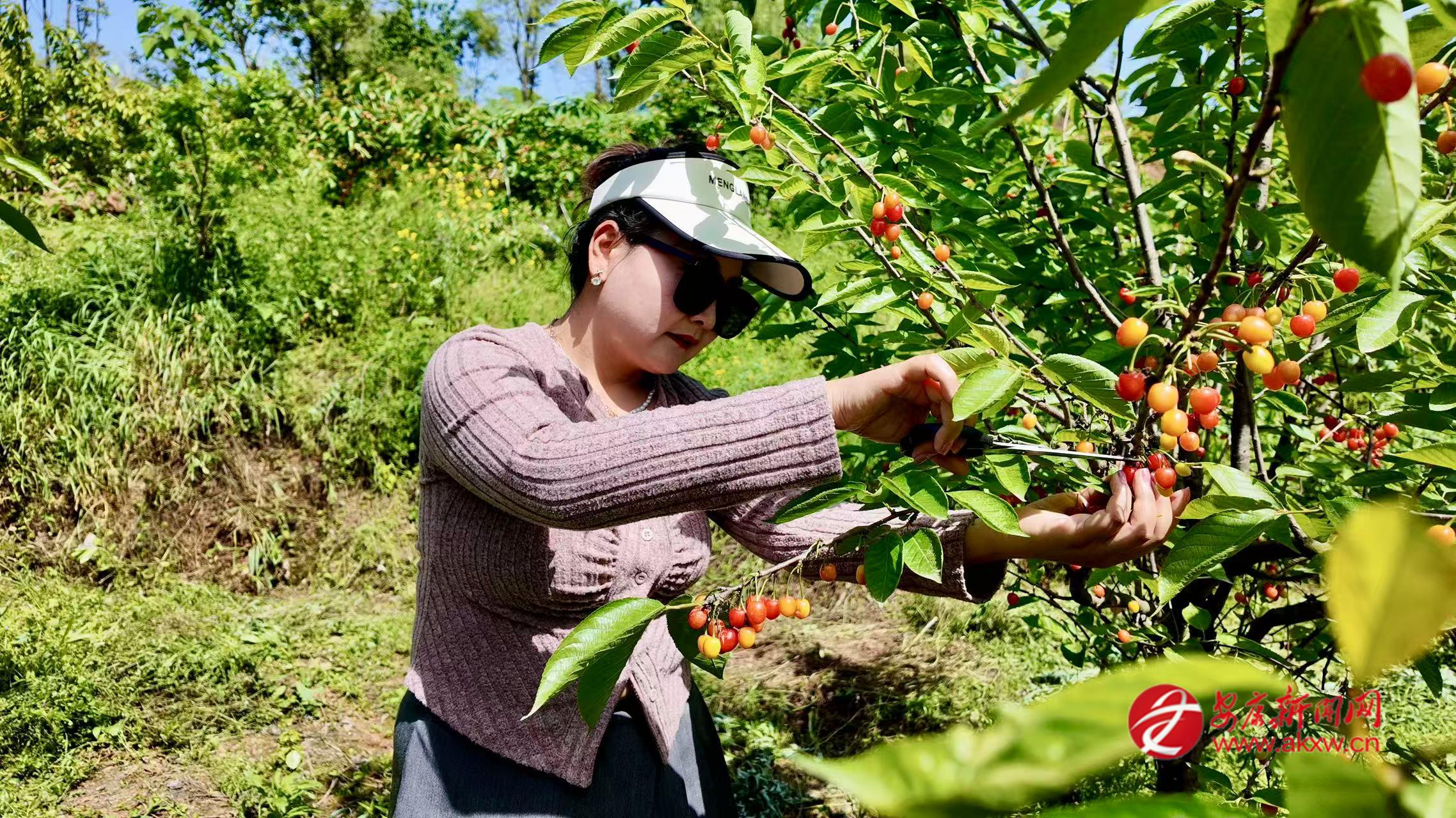櫻桃園內(nèi),果農(nóng)們忙著采摘,臉上洋溢著豐收的喜悅。種植戶張漢芝說,村里前兩年引進了新品種櫻桃樹,替代了以往高大的老式櫻桃樹,樹體變矮,便于采摘,今年已是第二年掛果,產(chǎn)量十分可觀?!斑@兩天陸續(xù)有游客來采摘,大家都說我們的櫻桃品種好、顆粒大、味道正?!睆垵h芝介紹,櫻桃成熟后,可提供入園采摘和成品購買兩種方式,她一天大概能收入六七百元。