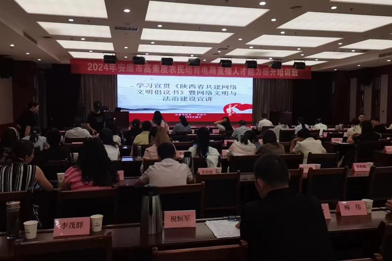 ? ? ? 5月28日,安康市高素質(zhì)農(nóng)民培育電商直播人才能力提升培訓(xùn)班如期開班,市委網(wǎng)信辦參加活動并就“踐行網(wǎng)絡(luò)文明 弘揚網(wǎng)絡(luò)誠信”做專題宣講培訓(xùn)。