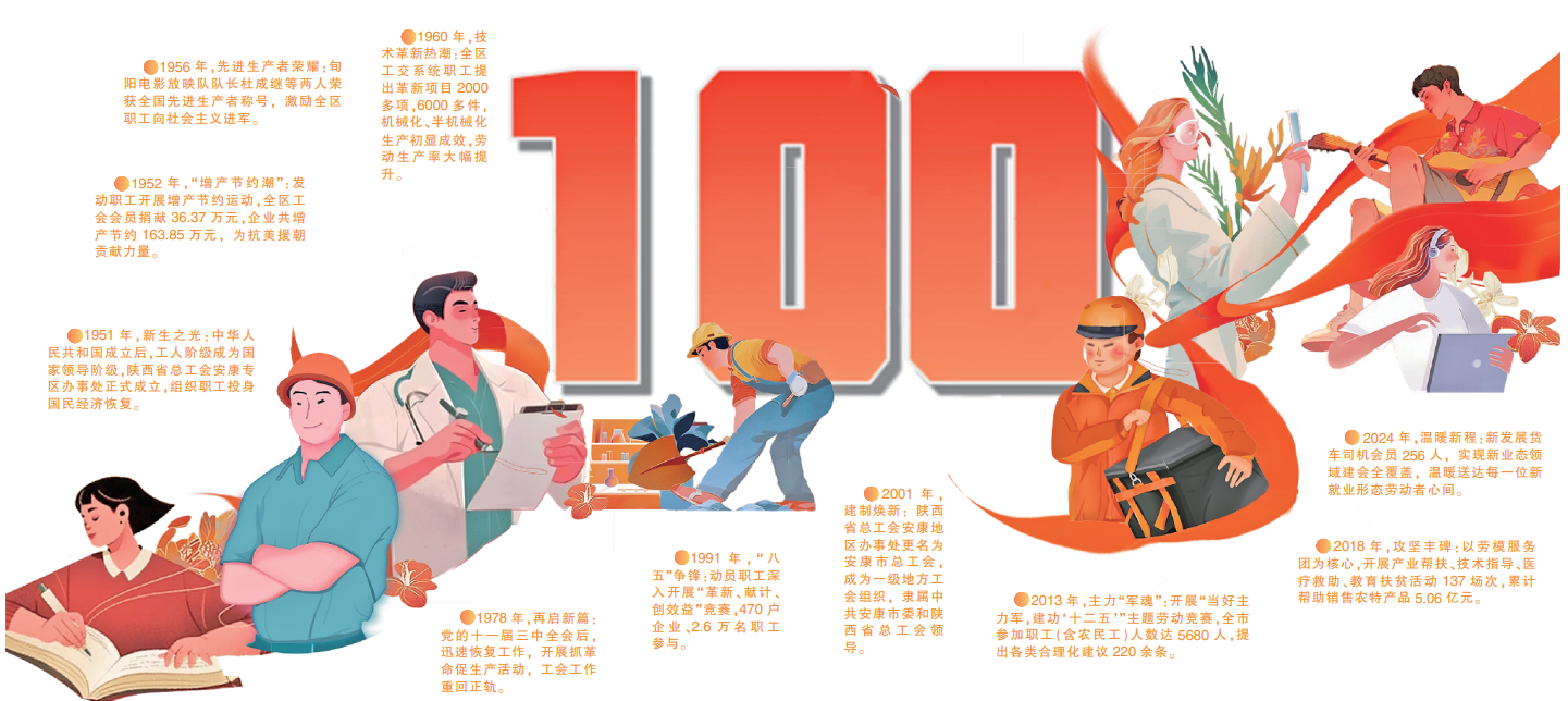 2025年,是全國總工會成立100周年,作為工人階級和廣大勞動群眾的堅強(qiáng)后盾,全國總工會為我國的社會進(jìn)步和經(jīng)濟(jì)發(fā)展做出了不可磨滅的貢獻(xiàn)。安康工運事業(yè)從1925年漢水畔第一聲“勞工萬歲”的吶喊,到深度參與三線建設(shè)、脫貧攻堅、生態(tài)經(jīng)濟(jì)等重大戰(zhàn)略,再到新時代百萬職工投身幸福安康建設(shè)的鏗鏘步履,始終與黨的事業(yè)血脈相連,與城市發(fā)展同向同行。
