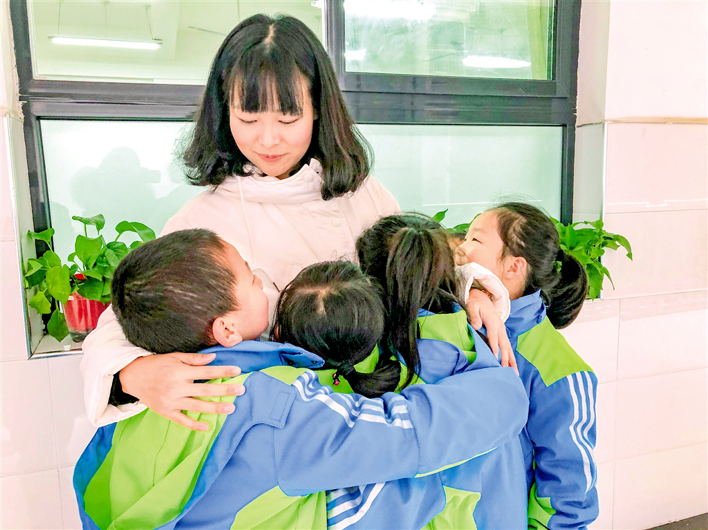 在楊廣慧班上有個令人頭疼的小男孩,父母拿他毫無辦法。但楊老師發(fā)現(xiàn)他的優(yōu)點:反應(yīng)快、責(zé)任心強、愛表現(xiàn)。為了鼓勵孩子,讓孩子發(fā)揮自己的優(yōu)勢,楊廣慧主動給他安排班級工作,慢慢地,他成了老師的小幫手。家長來到學(xué)校時激動地對楊老師說:“孩子真的很喜歡你,你讓他當(dāng)小組長,他回去高興了好久。”楊廣慧說:“孩子們的世界最是單純,只要用心對待他們,他們一定會愛著你。”