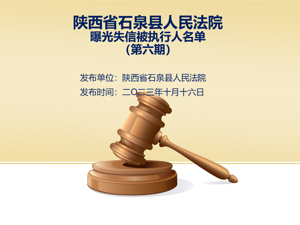 為了進(jìn)一步加大執(zhí)行力度,保障勝訴當(dāng)事人的合法權(quán)益,推進(jìn)社會誠信體系建設(shè),依照《中華人民共和國民事訴訟法》、《最高人民法院關(guān)于公布失信被執(zhí)行人名單信息的若干規(guī)定》等法律、司法解釋的有關(guān)規(guī)定,現(xiàn)對一批已進(jìn)入執(zhí)行程序,且尚未全部履行義務(wù)的被執(zhí)行人進(jìn)行媒體曝光,歡迎廣大群眾支持石泉縣人民法院的工作,向我院提供被執(zhí)行人的財(cái)產(chǎn)線索,使生效法律文書能夠得到切實(shí)執(zhí)行,讓人民群眾切實(shí)感受到公平正義就在身邊。