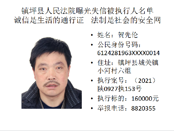 曝光失信 | 鎮(zhèn)坪法院2022年第一期失信人員名單公布