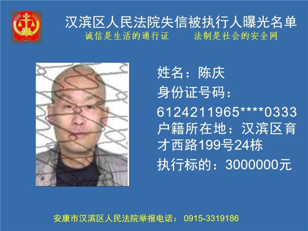 曝光失信 | 安康市漢濱區(qū)人民法院失信被執(zhí)行人曝光名單(2022年第1期)