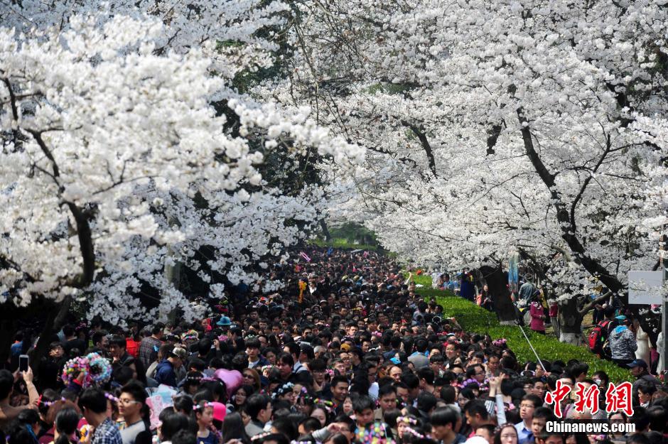 3月21日,武大櫻花盛開游客如織。當(dāng)日,武大櫻花盛開的首個(gè)雙休日。長(zhǎng)約200米的櫻花大道上1000多株櫻花競(jìng)相綻放,吸引著數(shù)萬游客,使寧靜的校園變成了熱鬧的公園。中新社發(fā)張暢 攝Suf安康新聞網(wǎng)