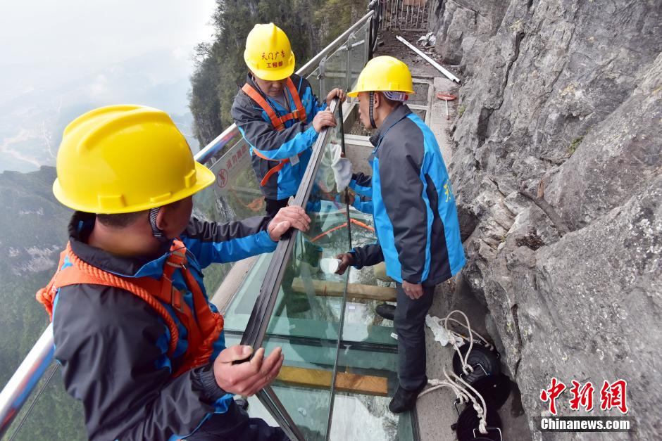 張家界天門山玻璃棧道換“新裝”