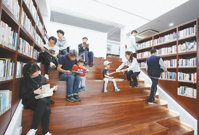 | 附近居民在“融書房”閱讀。(記者 屠知力 攝) |